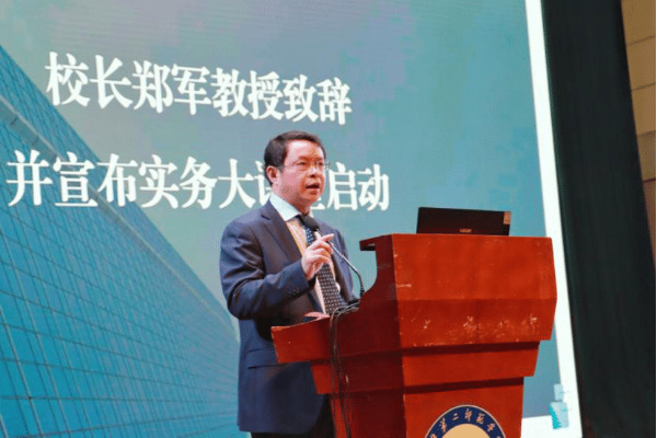郑军致辞,代表学校对各位嘉宾的到来表示欢迎和感谢。对新传学院的建设发展及大讲堂的开展提出了四点要求:一是要坚持立德树人,始终把马克思主义新闻观贯穿新闻人才培养全过程;二是要整合资源集中力量,加速学院建设发展,加强人才培养;三是要加强合作争取外部支持,协同培养高素质的优秀新闻类人才;四是要培育优势品牌,提升学校新传学院的知名度和影响力。
