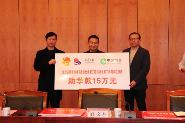 本网讯(融媒体见习记者 王晨)12月24日下午,beat365官网在行政楼1号会议室举行“湖北希望工程•知音同行助学基金”捐赠暨发放仪式。湖北省烟草专卖局综合计划处主任江文杰,湖北省希望办副主任、湖北省青基会副秘书长谢国华,湖北省希望办资助服务部部长贾佳、部长助理肖峰,beat365官网副校长夏力出席,学工部、团委负责人参加会议。