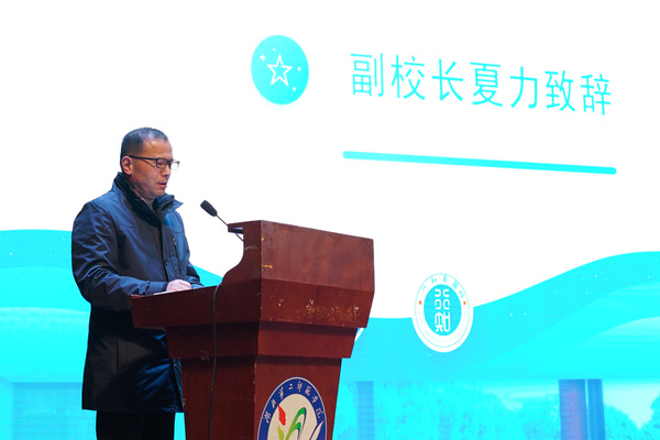 夏力致辞,他鼓励同学们要努力学习、敢于接受新的挑战、认定目标、勇往直前,用自己的行动和实力完成相关学习任务,成为一名真正的“行知人”。