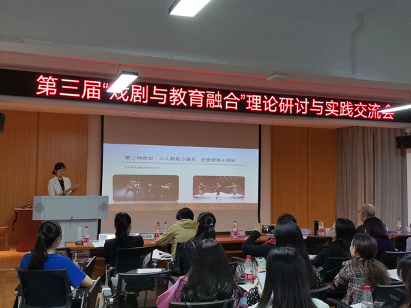 台湾艺术大学戏剧教授张晓华教授作《学校戏剧教育的台湾经验》主题报告,综述台湾应用戏剧的范联与运作情况,浅谈戏剧在台湾的应用领域与实践;北京地坛小学康健老师以《我眼中的北京中小学戏剧教育》为题,分享了北京中小学戏剧教育经验;湖北工业大学梁琴老师介绍了戏剧在英国传播的案例;beat365官网戏剧教育研究中心王培喜老师以《戏剧化教学的课程设计原则与教学要求》为主题,辨析戏剧教育的两种普通观点,分析了实践经验。