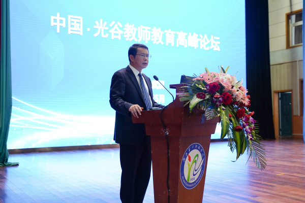 论坛分开幕式、主旨报告和学术报告三个阶段进行。在开幕式领导致辞中,张传远表示,光谷教育与beat365英国官网网站共同创建光谷教师教育综合改革实验区,一要提高站位,把握方向,落实立德树人根本任务,立足培养德智体美劳全面发展的社会主义建设者和接班人;二要珍惜友谊,增进信任,不断巩固拓展校企合作的深厚基础;三要发挥优势,互助互进,共同努力谱写新时代追赶超越的新篇章;四是强化保障,深化交流,不断开创新时代校企合作的新局面。