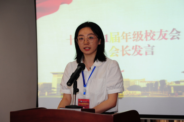 新任2021届年级校友会会长马芸昀发言,她代表全体成员向母校表达了衷心地感谢。她表示,将不负众望,团结带领2021届年级校友会的全体成员,为母校的发展贡献力量。