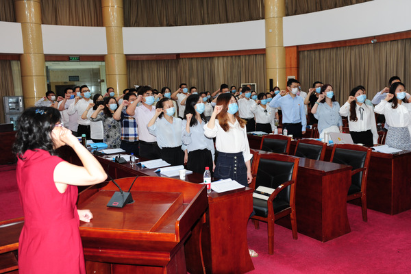 “荆楚好老师”范丹红教授分享了如何尽快转换教师身份的经验并激励大家用教师身份的成长创造使命的精彩;新进教师代表外国语学院尹雪扬发言;全体新进教师进行入职宣誓。