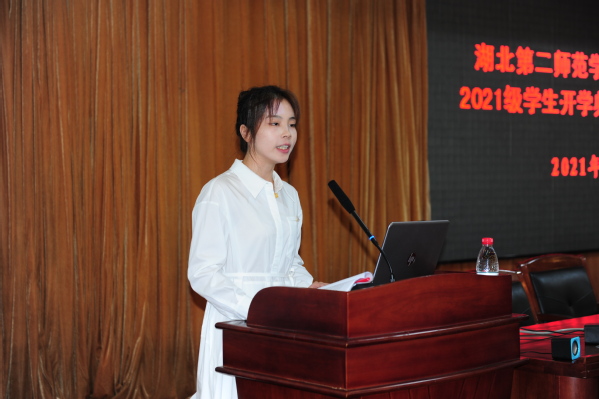 学生代表、2021级物理学专业学生韩雨婷和“优师计划”培养学院代表、数学与经济学院院长肖海燕教授分别发言。教师教育学院副院长张和平对教师职业核心技能训练及认证手册进行了解读。