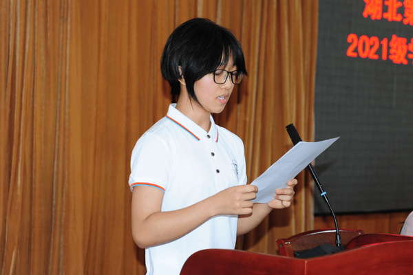 典礼结束后,湖北省丹江口市三官殿中心小学副校长、全国优秀共青团员、马云乡村教师蔡明镜老师为“优师计划”2021级学生上“开学第一课”——《我的乡村教育故事》,她分享了自己五年乡村教育的点点滴滴。蔡老师用爱心、知识、情怀把孤岛一样的乡村小学变成了师生们追逐梦想的热土,把乡村教学点变成守护留守儿童梦想的家园,感人至深。她激励大家要坚定信仰、热爱祖国,做好学生成长路上的“点灯人”。