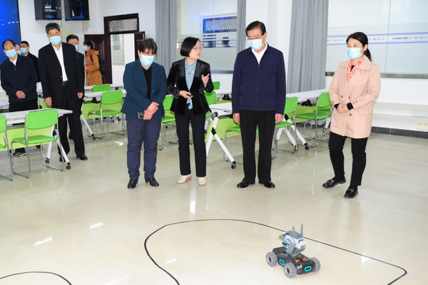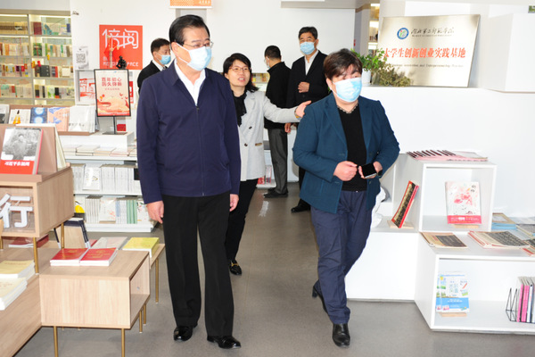 柯俊一行实地考察了学校图书馆、倍阅书店、湖北省轮滑、棒垒球训练基地及校地共建华为云学院人工智能大数据中心,听取了相关工作汇报。