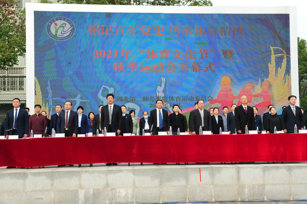 本网讯(融媒体记者 李岩茸 何妍莉 唐晴子)朗朗金秋,丹桂飘香,11月4日上午,2021年体育文化节暨秋季运动会开幕式在学校棒垒球场隆重举行。校长郑军、校党委副书记许邦官、校纪委书记刘昕,副校长黄颂、夏力、胡兴出席,体育运动委员会全体成员、各教学学院分党委(党总支)书记、院长参加开幕式,副校长陈勇主持开幕式。