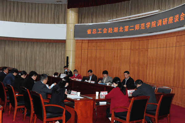 本网讯(融媒体记者 刘劲知 吴何玉)11月5日上午,省总工会党组成员、副主席刘晓林,省教科文卫体工会主席胡东红等一行到beat365官网考察调研,并在行政楼一号会议室召开调研座谈会。校党委书记张国秀及有关教学学院、职能部门负责人参加座谈会。副校长、工会主席陈勇主持座谈会。