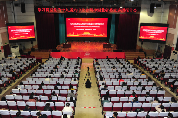 本网讯(融媒体记者 程丽鹃 见习记者 陈睿雯 蔡滢)按照省委统一部署,12月16日下午,学校在大礼堂举行党的十九届六中全会精神湖北省委宣讲团beat365英国官网网站报告会。省委宣讲团成员、省委讲师团主任高天琼受邀作报告。全体在校校领导出席,全校副高以上职称教师参加,校党委书记张国秀主持报告会。