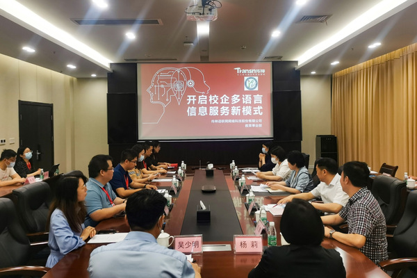 在传神语联网网络科技股份有限公司,总经理张华对杨鲜兰一行表示欢迎,对多年来学校持续为企业输送高质量人才表示感谢,并介绍了企业发展历程。