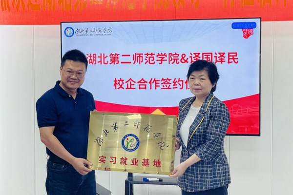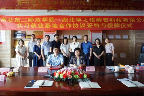 杨鲜兰代表学校分别与译国译民翻译服务公司、湖北华之语教育科技有限公司签订校企合作协议并授牌。