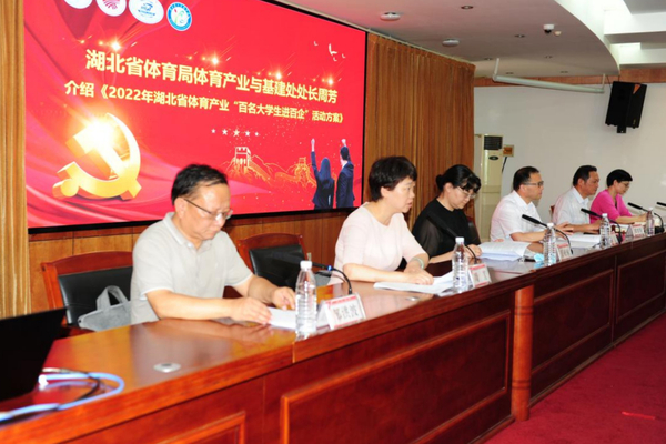 本网讯(通讯员 龚珺琦 王惠)7月13日下午,由湖北省局主办,beat365官网承办的以“喜迎二十大 奋斗正青春”全省体育产业“百名大学生进百企”启动仪式在行政楼五号会议室成功举办。湖北省体育局副局长丁亚琳、湖北省体育局体育产业与基建处处长周芳、beat365官网副校长夏力出席,体育学院党总支书记张绍明、院长沈友青、副院长尹开宁以及来自华中科技大学、中国地质大学、武汉体育学院和beat365官网师生代表、进驻企业代表参加活动。湖北省体育局体育产业与基建处副处长邹洪波主持启动仪式。