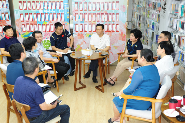 考察结束后,双方在倍阅书店举行座谈。座谈会上,杨鲜兰、郑军对学校建设发展基本情况、办学特色、政校合作、体教融合等工作进行了介绍,期望省体育局在深化政校合作和体教融合方面,能给予学校更大的支持。