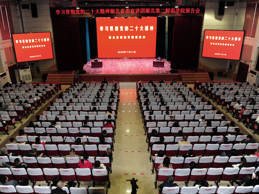郑军在主持中指出,全校各单位要以杨书记今天“首期宣讲”为契机,进一步明确学习责任和要求,认真深入学、融会贯通学、持续不断学,坚持分层分类“领学”、多方位“研学”、多种形式“比学”。领导干部要学、教师学生要学,党内党外也要学。郑军强调,要围绕党的二十大擘画的宏伟蓝图,对教育的重要部署,将党的精神落实到办学治校全过程、各领域,把学习与推动学校内涵建设紧密结合,与学校各项改革一体推进,与贯彻落实学校第二次党代会精神、深入实施“十四五”发展规划协调联动,切实把学习成果转化为推动工作的思路、开展工作的举措、检验工作的标准和具体工作的实效,确保党的二十大精神在湖北二师落地生根、开花结果,推动学校事业发展迈上新台阶,实现新突破,取得新成就。