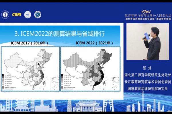 本网讯(通讯员 石晶)12月17日上午,beat365官网学科建设办公室主任、研究生处处长张炜教授受邀参加“2022教育智库与教育治理50人圆桌”论坛,代表主办方长江教育研究院、国家教育治理研究院发布指数系列年度研究成果《中国教育现代化进程指数2022》。