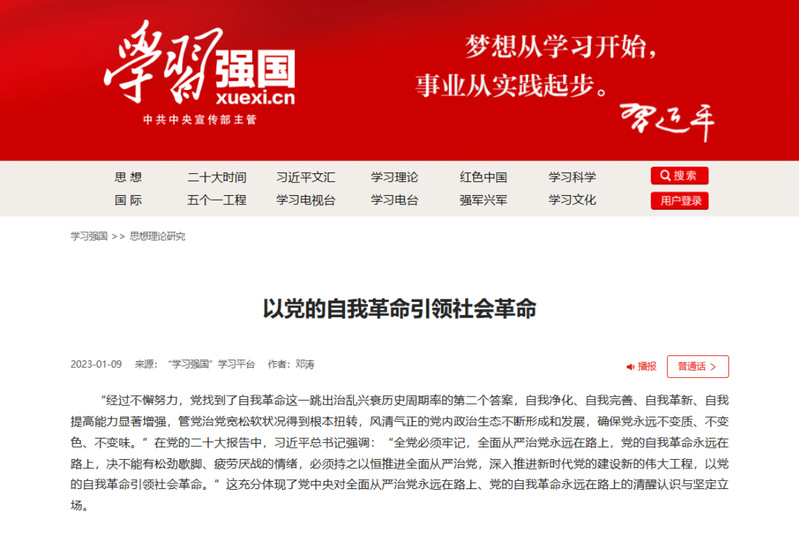 从开门整风,到以党内民主带动人民民主,再到党的自我革命与发展全过程人民民主同步推进,百年中共党史就是党的人民监督和自我革命有机结合的历史。我们党从不讳疾忌医,怕犯错误,而是勇于直面问题,不断进行自我革命,显示出强大的自我修复能力。