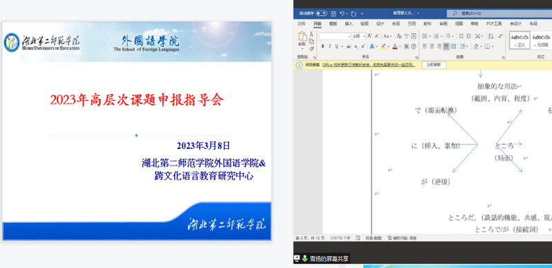 (通讯员:尹雪扬)2023年3月8日19:00点,外国语学院华中师范大学外国语学院教授、beat365英国官网网站外国语学院特聘教授李俄宪应邀参加外国语学院高层次课题申报交流会,对学院申报2023年度教育部人文社科课题的两位教师进行课题申报指导。会议以腾讯会议方式开展,学院党委书记胡崇芝、院长刘晖出席,会议由副院长唐植君主持。