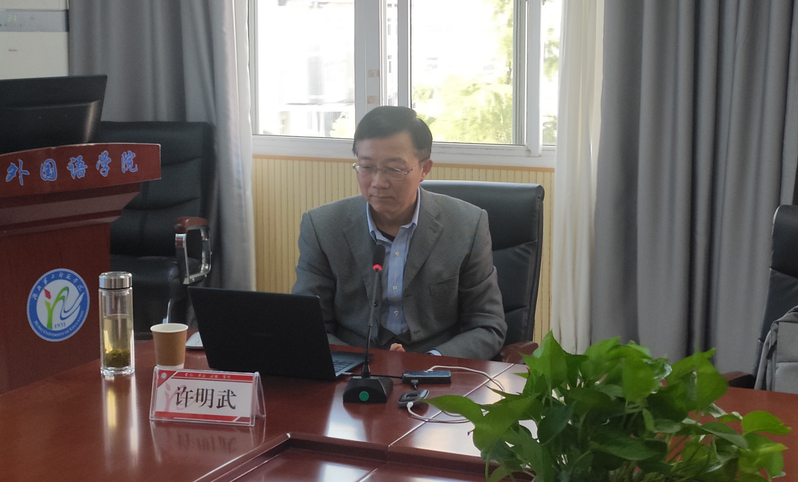 (通讯员:唐植君)2023年3月14日下午3:30,外国语学院邀请华中科技大学外国语学院许明武教授,为学院2023年高层次课题申报及科研平台建设进行指导。外国语学院院长刘晖主持会议,学院党委书记胡崇芝、副院长冶慧颖、唐植君、学院教学及科研骨干教师20余人参加了此次指导会。