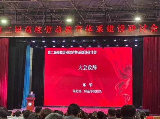 郑军代表学校对参加研讨会的各位领导、专家、来宾表示欢迎!他指出,劳动教育是学生成长的必要途径,具有树德、增智、强体、育美的综合育人价值,要在全校营造崇尚劳动的文化氛围,激发学生热爱劳动的内生动力,奋力打造劳动教育特色品牌,培育、培养学生立志成长为德智体美劳全面发展的社会主义建设者和接班人。