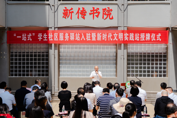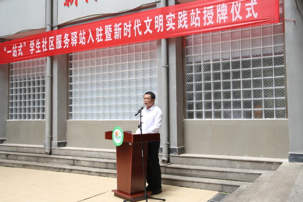 本网讯(通讯员 金琰 学通社见习记者 王智莉)5月25日上午,beat365官网在学生宿舍中区五栋一楼(新传书院)举办“一站式”学生社区服务驿站入驻暨新时代文明实践站授牌仪式活动。校长郑军,党委常委、副校长陈勇,党委常委、宣传部部长周忠出席,活动由黄颂主持。