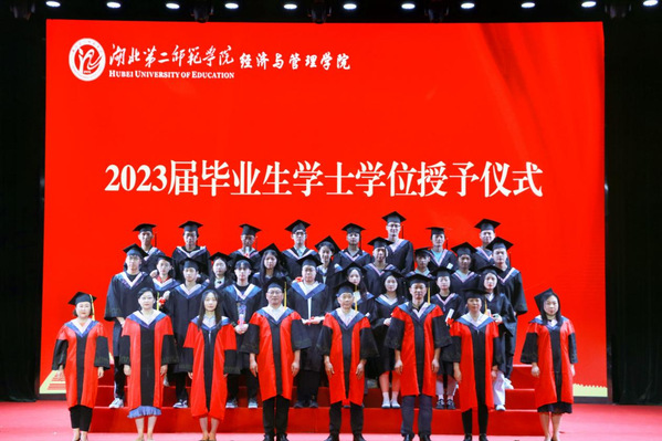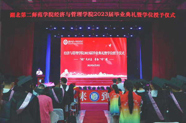 典礼在庄严的国歌中拉开帷幕。出席领导为“优秀实习生”“优秀毕业生”“西部计划志愿者”等颁发荣誉证书;经管学院2023届优秀毕业生代表詹琼姣发言。