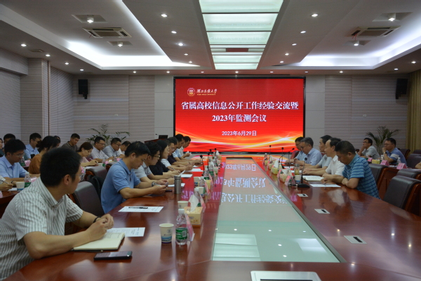 本网讯(通讯员 陈群 )6月29日,省属高校信息公开工作经验交流暨2023年监测会议在湖北民族大学举行,省教育科学研究院副院长、研究员刘国卫,湖北民族大学党委常委、统战部长田景福出席会议,来自省内高校的信息公开工作监测专家近60人参加会议。