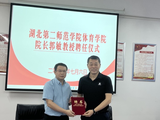 本网讯(通讯员 向琴英)7月6日上午,学校举行体育学院院长郭敏教授聘任仪式。校长郑军出席仪式,校党委常委、副校长田恒平主持仪式。