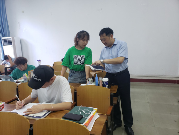 教务处处长刘永存提醒同学们在努力学习的同时要注意补充营养、防暑降温,各教学学院领导、值班老师为同学们发放了慰问品。