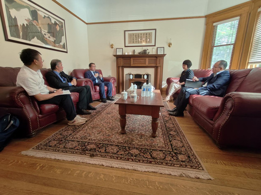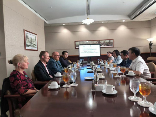 (图为郑军与加拿大总领馆教育处领导座谈交流)