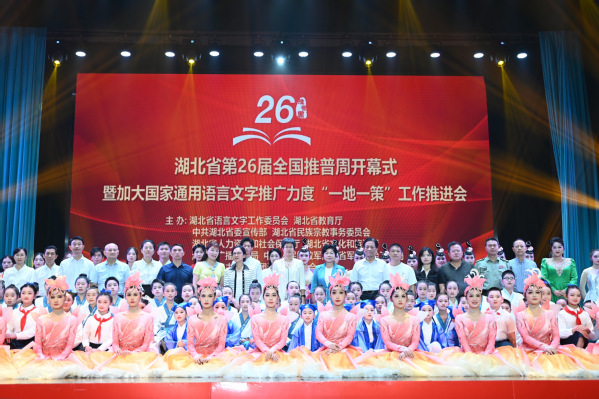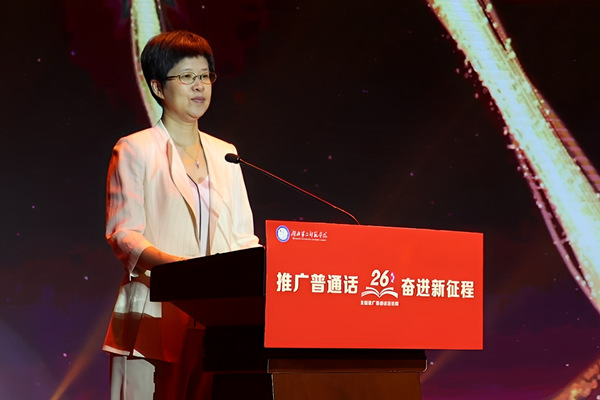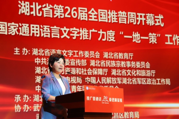 (图为:黎虹宣布湖北省第26届全国推广普通话宣传周活动正式启动)