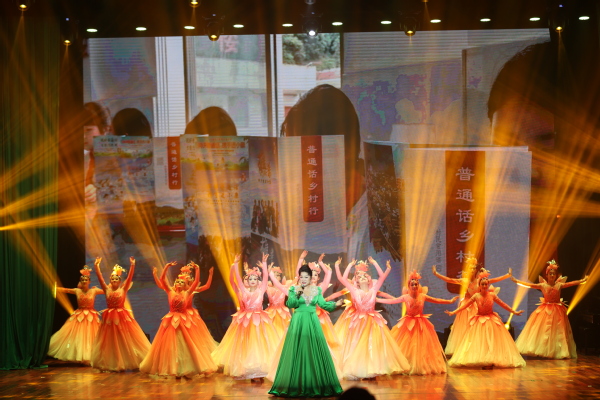 开幕式上,与会成员集体观看了本届全国推广普通话宣传周宣传片。随后,由大中小学生同台,运用朗诵、歌曲、舞蹈等艺术表现形式对优秀语言文化进行了精彩展演。展演分为“以文化人:史之起源”“以文化人:聆听中国”“以文化人:时代征程”三个篇章。表演者们深情诵唱演绎经典“爱莲说”“中国话”“黄鹤楼送孟浩然之广陵”“诗经”“月光下的中国”“吹号者”以及“我的思念是一条河”等节目,文字、吟诵、器乐、舞蹈相融,普通话与中华优秀文化相映,为现场观众带来了一场精彩的中华经典文化视听盛宴。