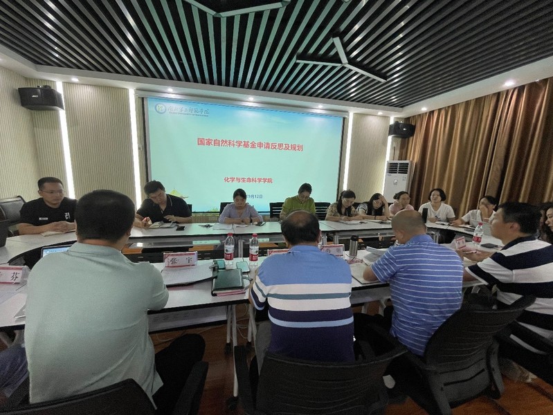 为落实学校科研工作要求,进一步提高学院国家级项目的申报质量,9月12日,化生学院召开了国家基金项目申报经验交流会。会议由化生学院院长曾国平主持,科研处处长肖明、副处长李海雄、科室主管淡珊、化生学院副院长张宇及国家自科项目的申报教师参加了此次会议。