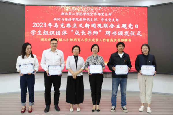 领学环节结束后,徐晓为新闻传播人才协同育人学生成长工作室授牌;陈瑛、谢莎分别为学生组织成长导师颁发聘书;班主任代表张梦、学友代表张明月分别围绕主题,结合实际工作谈自身体会。会上介绍了“新生看光谷”和“畅游江城”活动,并为学院“新生看光谷”实践团授旗。