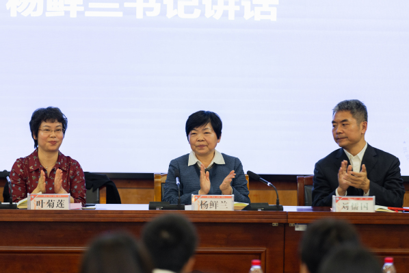 杨鲜兰代表学校感谢各地教育局给予学校的信任和大力支持,详细介绍了“优师计划”师范生培养的推进情况,并对同学们提出三点期望:一是要厚植教育报国情怀,到祖国和人民最需要的地方去;二是要提升专业素养,一步一个脚印走好为学为师之路;三是要牢记嘱托,以优师强师服务教育强国建设。