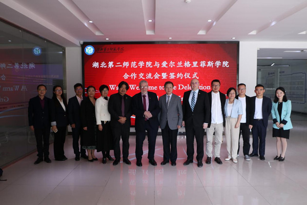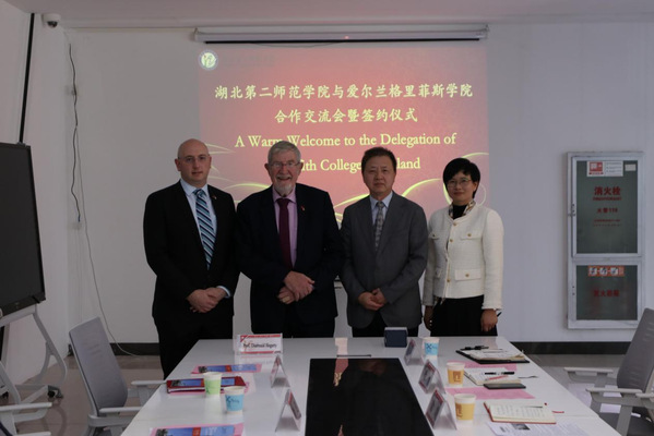 胡兴向德尔米德·赫格提一行来访表示热烈欢迎,并对beat365官网校史校情作了有关介绍。他表示,学校十分重视教育国际化发展,教育国际化是beat365官网跨越式发展的重要路径,爱尔兰都柏林格里菲斯学院是爱尔兰最大的私立高校之一,希望两校能建立友好合作关系。