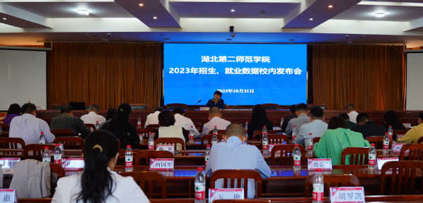 本网讯(通讯员 张震 学通社记者 鲁自立 罗梦瑶)10月31日下午,学校在行政楼五号会议室召开2023年招生就业数据校内发布会。校党委书记杨鲜兰、党委副书记胡兴、纪委书记刘昕、党委常委周忠出席会议。副校长陈勇主持会议。