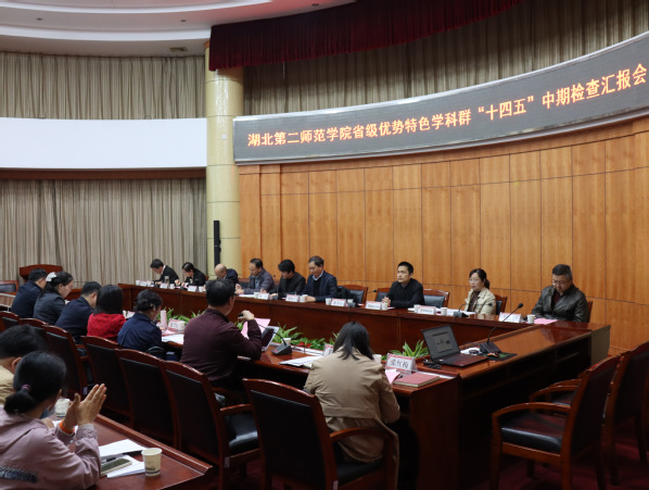本网讯(通讯员 王敏)11月10日下午,学校在行政楼一号会议室召开省级优势特色学科群(以下简称学科群)“十四五”中期检查汇报会。会议邀请湖北师范大学研究生院院长刘继兵教授来校指导工作,学科建设办公室主任张炜主持会议。