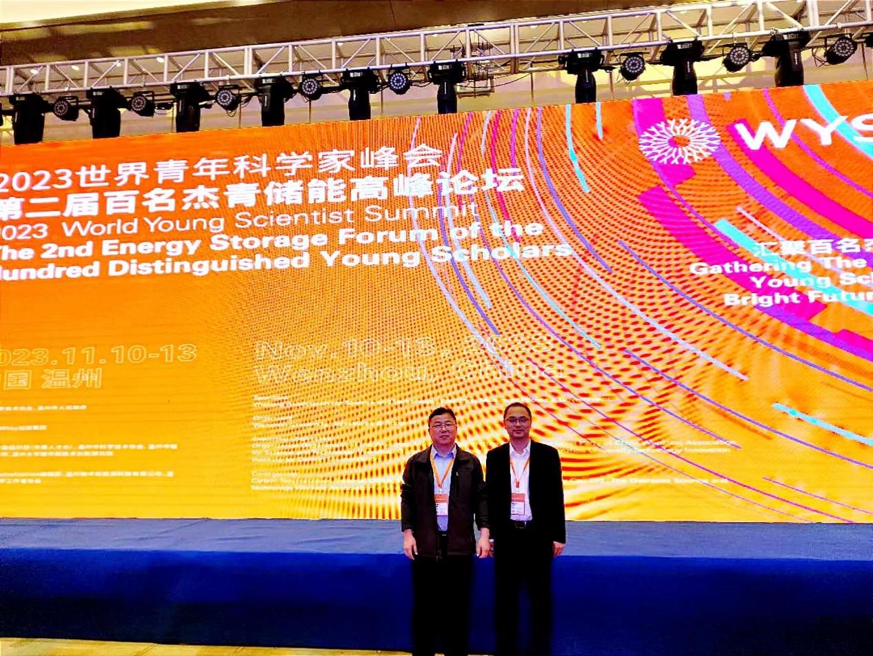 本网讯(通讯员 陶军晖)11月10-13日,由中国科学技术协会、浙江省人民政府领衔指导,温州市人民政府、Wiley出版集团共同举办的2023世界青年科学家峰会暨第二届百名杰青储能高峰论坛在浙江省温州市温州大学举办。大会紧紧围绕“汇聚百名杰青,共聚储能辉煌”主题,聚焦青年性、学术性、国际性、汇聚全球科创资源,吸引来自全球4位诺奖得主、36位海内外院士等近800名专家和青年科学家参会,共商储能前沿技术与产业发展发展,深层次展示我国在储能前沿技术与产业发展的最新进展与成果。beat365官网物理与机电工程学院副院长李杰、青年教师陶军晖教授参加了本次会议并作技术交流。