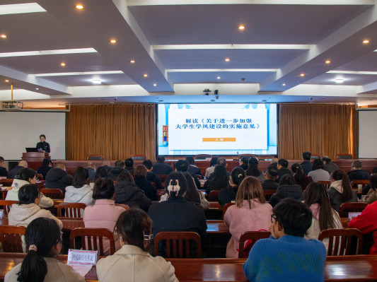 会上,学生工作部部长文敏详细解读了《beat365英国官网网站关于进一步加强大学生学风建设的实施意见》,并对学校2023年“学风建设宣传月”活动进行安排部署。