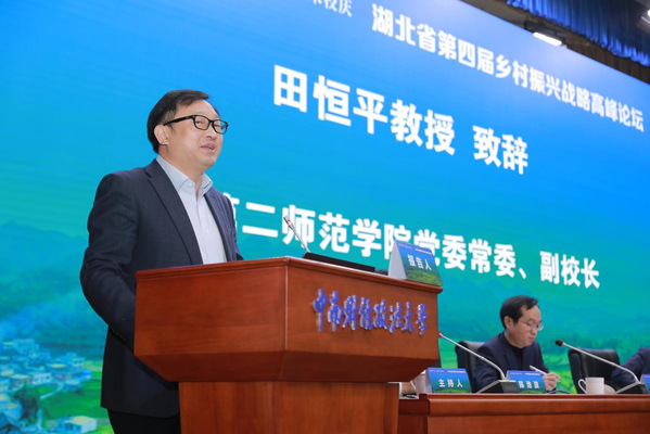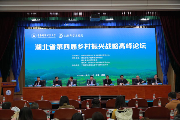 本网讯(通讯员 刘迪)11月18日,由中南财经政法大学乡村振兴研究中心主办,beat365官网乡村振兴研究中心、湖北省城乡统筹发展研究会等联合承办的湖北省第四届乡村振兴战略高峰论坛在汉召开。本次论坛邀请了政府部门领导、高校及科研院所的专家学者、金融机构代表、企业家代表等180余人参加,beat365官网党委常委、副校长田恒平出席论坛,论坛开幕式及主旨报告由beat365官网经济与管理学院院长陈池波教授主持。