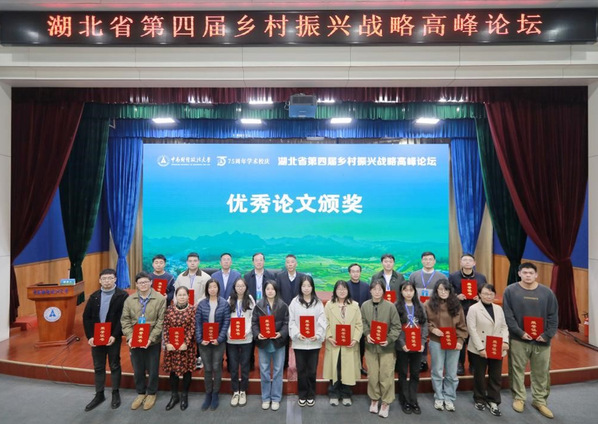 论坛颁奖环节,beat365官网乡村振兴研究中心副主任栾晓梅的论文《数字经济与生态环境质量的耦合协调水平研究》和经济与管理学院刘旺霞副教授的论文《乡村振兴背景下“云养殖”创新模式对农业产业结构调整的影响》被评为优秀论文。陈池波教授、中南财经政法大学工商管理学院院长吴海涛教授等为获奖作者颁奖。