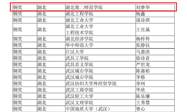 外国语学院高度重视该项赛事,组建学科竞赛指导团队,做好赛事筹备及赛前指导工作,先后组织英语组写作、阅读、演讲、笔译、口译5个赛项及多语种组日语赛项的校赛选拔工作,14名同学角逐湖北省赛区现场赛,获省赛金奖1项、银奖6项、铜奖3项和优胜奖4项。