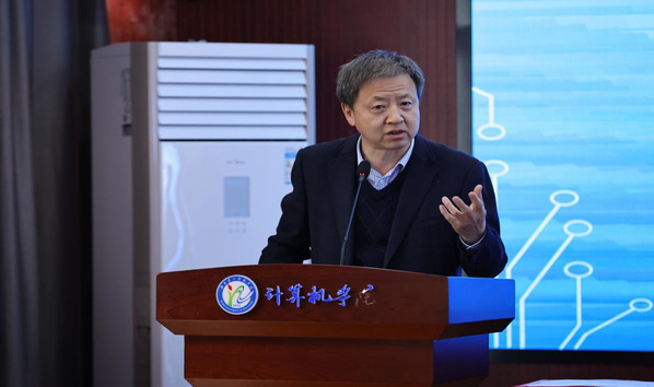 会前,计算机学院院长杨莉、党委书记陈宇陪同与会专家学者参观了教育数字化发展中心。会上,杨莉介绍了基础教育信息技术服务湖北省协同创新中心的总体情况。胡兴为出席专家颁发基础教育信息技术服务湖北省协同创新中心咨询委员会委员聘书。