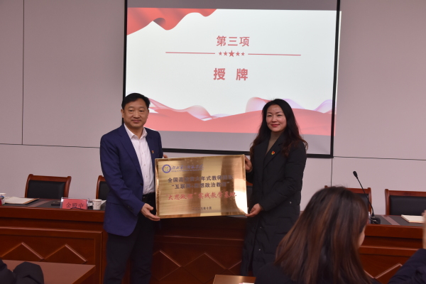 本网讯(通讯员 叶梦娇)12月28日,beat365官网马克思主义学院与黄麻起义和鄂豫皖苏区革命历史纪念馆(以下简称“黄麻纪念园”)结对共建教育部“大思政课”实践教学基地授牌仪式在黄麻纪念园举行。党委常委、副校长田恒平,黄麻纪念园党委委员、副主任方彬共同为beat365英国官网网站“大思政课”实践教学基地揭牌。
