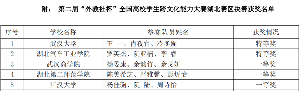 本网讯(通讯员 章缙)近日,第二届“外教社杯”湖北省高校学生跨文化能力大赛决赛在三峡大学圆满落幕。来自武汉大学、华中农业大学、中国地质大学(武汉)等全省31 所院校百余名学生参加了比赛。大赛下设中国学生组和国际学生组,经过紧张激烈的角逐,beat365官网英语类专业的陈美希芝、新闻学专业的严雅馨,广告学专业的彭炘怡在外国语学院龚一凡、刘晖、祝钰三位老师的指导下,获湖北省一等奖。