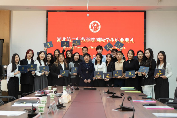 典礼上,杨鲜兰代表学校对圆满完成学业的18名哈萨克斯坦国际学生表示祝贺,向倾心竭力、无私付出的老师们表示感谢。杨鲜兰表示,四个月时间以来,同学们学习汉语、体验书法、练习剪纸.....参观了湖北省博物馆、辛亥革命武昌起义纪念馆,与中国学生一起画团扇、做月饼,共度中秋国庆双节;一起前往英山缠花、作工艺,体验民族习俗;一起参加迎新晚会、喜迎元旦......同学们通过认真、刻苦的学习,不仅能够用汉语表达与交流,也亲身体验了原汁原味的中国文化,更与中国的老师和同学们结下了深厚的情谊。杨鲜兰寄予哈萨克斯坦国际学生:一是继续学好中文,读懂中国,传播中国文化;二是了解中国、理解中国,讲好中国故事;三是永葆生机与活力,做中哈文化交流使者。