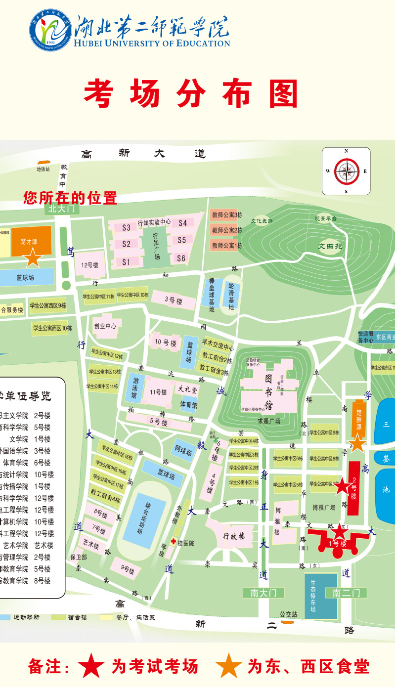 考点地址:武汉市东湖新技术开发区高新二路129号1号教学楼和2号教学楼。