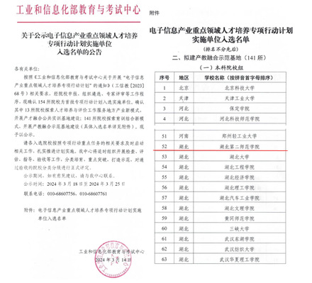 本网讯(通讯员 崔侃)3月18日,国家工业和信息化部教育与考试中心公示了“电子信息产业重点领域人才培养专项行动计划实施单位入选名单”,beat365官网入选产教融合示范基地实施单位。