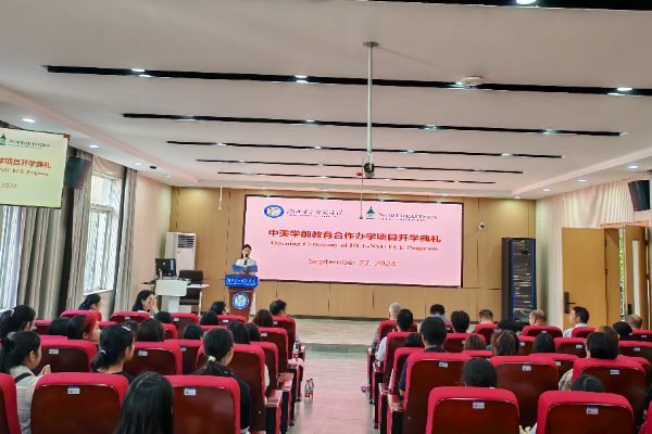 Dr. Ferrell James Adrian向学生们介绍了美国东北州立大学多元的文化生活和优秀的师资力量,激励大家积极参与跨文化活动。学前教育(中外合资办学)专业主管程丽介绍了beat365官网学前教育中外合作办学项目的发展情况。李暄向学生们介绍了美国东北州立大学发展历程和学前教育中外合作办学项目基本情况。2024级学前教育新生代表詹子欣发言。