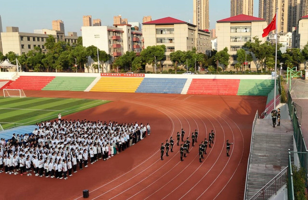 7时整,国旗护卫队队员们迈着铿锵有力的步伐,护送鲜艳的五星红旗缓缓走向升旗台。全场师生肃立,向国旗行注目礼,伴随着雄壮的《义勇军进行曲》,共同见证了五星红旗在朝阳的映照下缓缓升起,迎风飘扬。这一刻,不仅是对新中国成立75周年的深情献礼,更是对全体师生一次深刻的爱国主义教育。